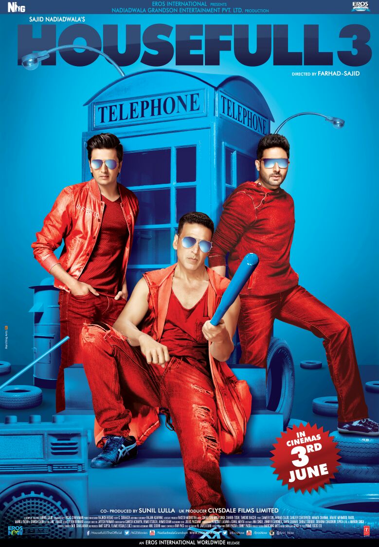 Check out Housefull 3 Poster starring Akshay Kumar, Abhishek Bachchan, Riteish Deshmukh, Jacqueline Fernandez, Nargis Fakhri, Lisa Haydon and directed by Sajid-Farhad.